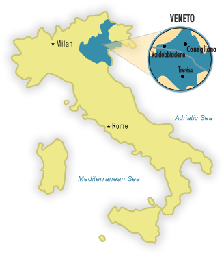 Prosecco is made from the Prosecco grape (Also known as Glera) in the Veneto region of northeastern Italy where Venice is the capital.